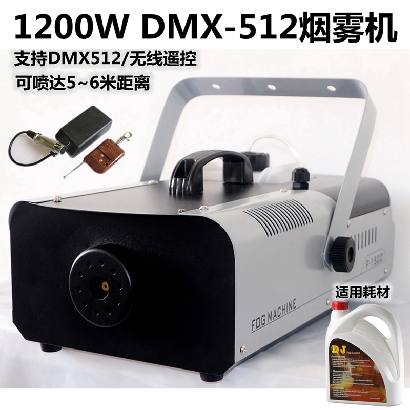 Mesin asap luar ruangan 1200W yang dapat dikendalikan dari jarak jauh DMX512 mesin asap panggung pernikahan mesin asap berwarna-warni dengan suhu konstan untuk bar.