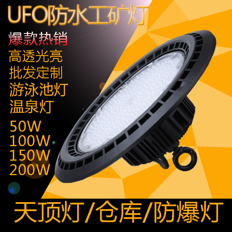 Lampu LED tambang UFO tahan air 100W Pabrik tanaman atap garasi kolam renang pencahayaan mengangkat 150W