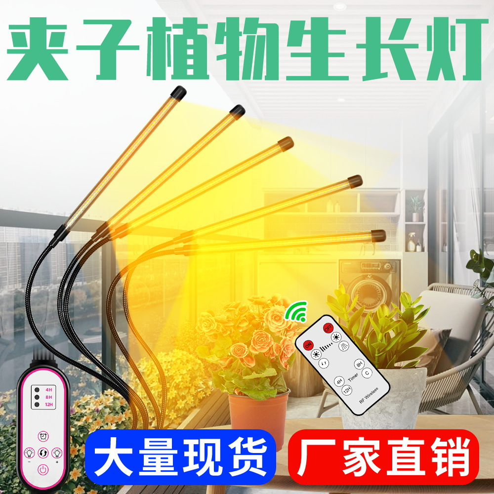 Qiancap lampu led klip penumbuh tanaman, lampu peredupan remote control untuk menanam bibit sinar matahari spektrum penuh