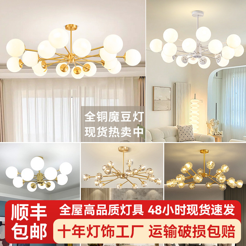 Lampu chandelier ruang tamu lampu molekul lampu kacang ajaib lampu gantung tembaga lampu kamar tidur LED rumah modern minimalis kamar lampu