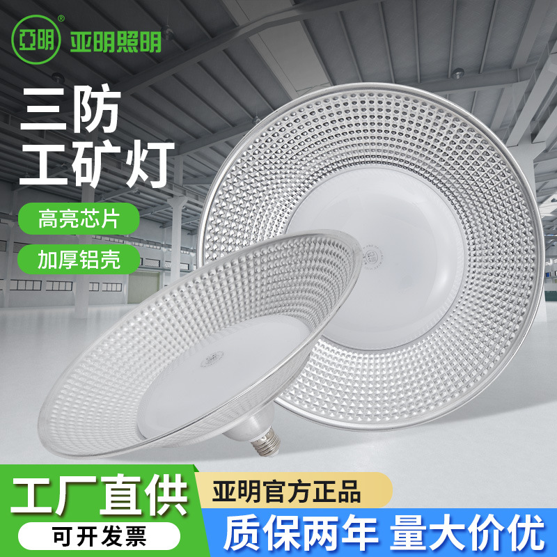 Yaming lampu pertambangan tiga tahan air LED 100W150W bengkel gudang garasi UFO lampu E27 tahan air lampu tambang