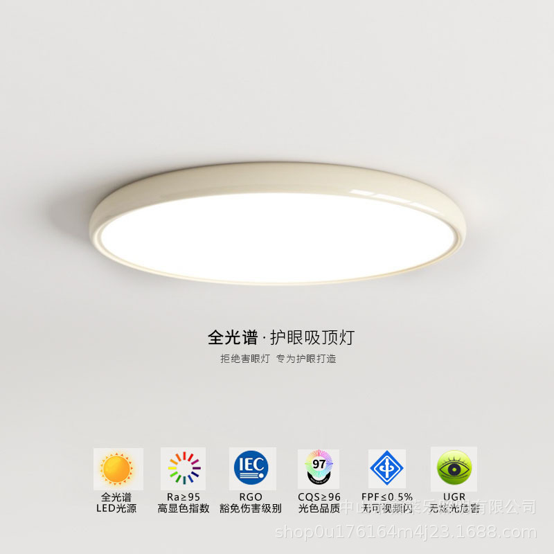 Lampu langit-langit kamar tidur gaya krim lampu kamar tidur master bulat minimalis lampu langit-langit belajar Perlindungan Mata ultratipis angin sunyi