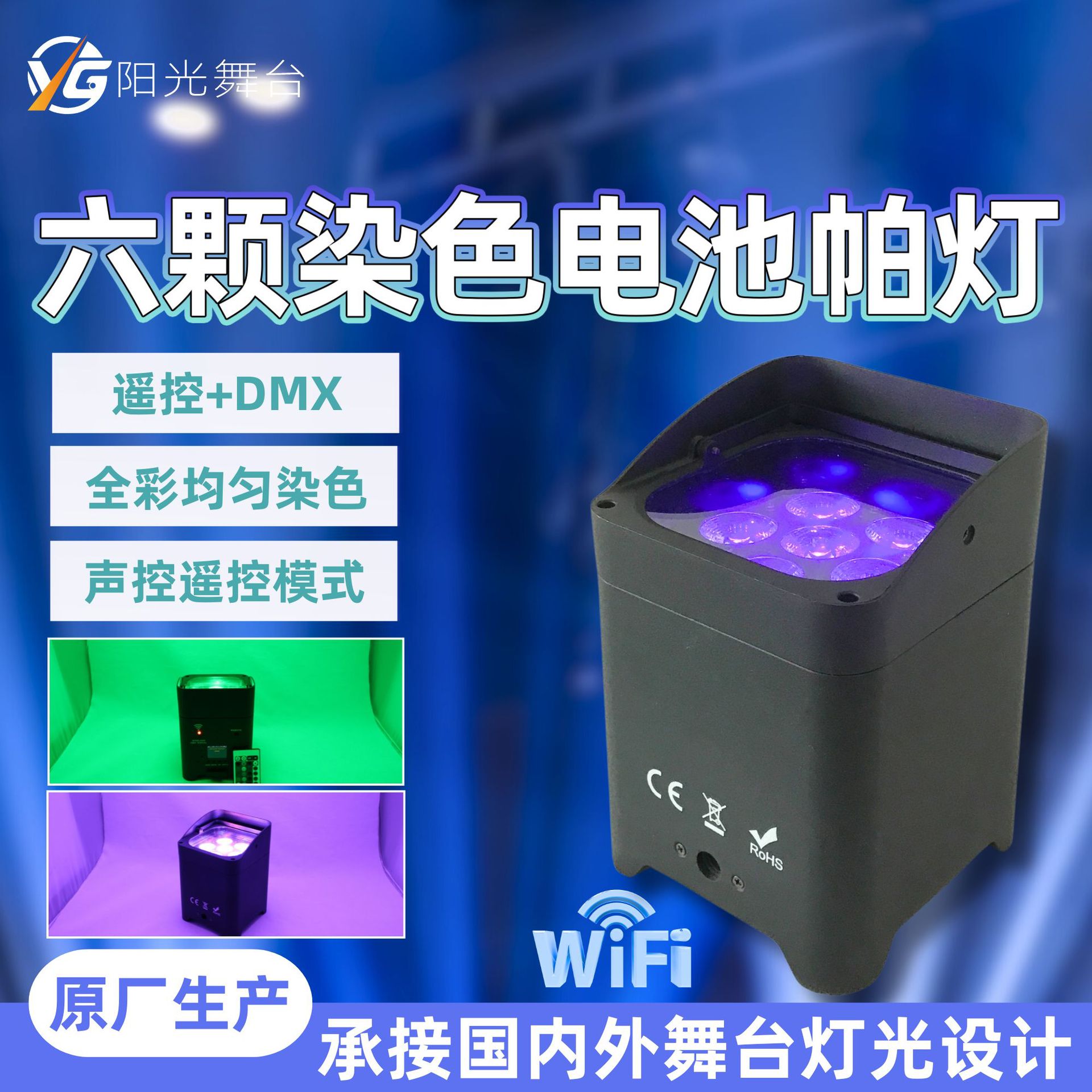 6 buah lampu par baterai enam-dalam-satu 18W, lampu panggung, kontrol jarak jauh aplikasi, nirkabel wifi, lampu par warna-warni untuk pernikahan luar ruangan