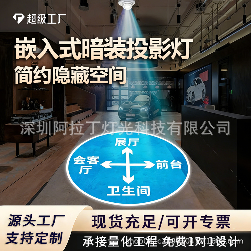 Lampu proyeksi komersial tertanam lampu sorot lantai dalam ruangan indikator bank Hotel pola teks logo Putar