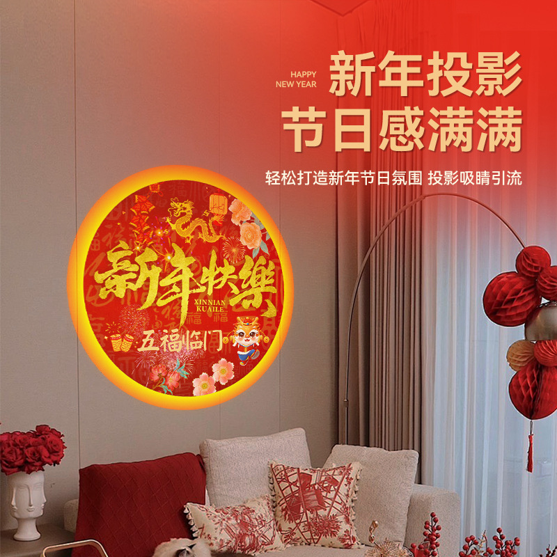 Lampu proyeksi Tahun Baru, lampu sorot logo pintu, toko lantai, Festival Musim Semi, fu karakter Tahun Baru