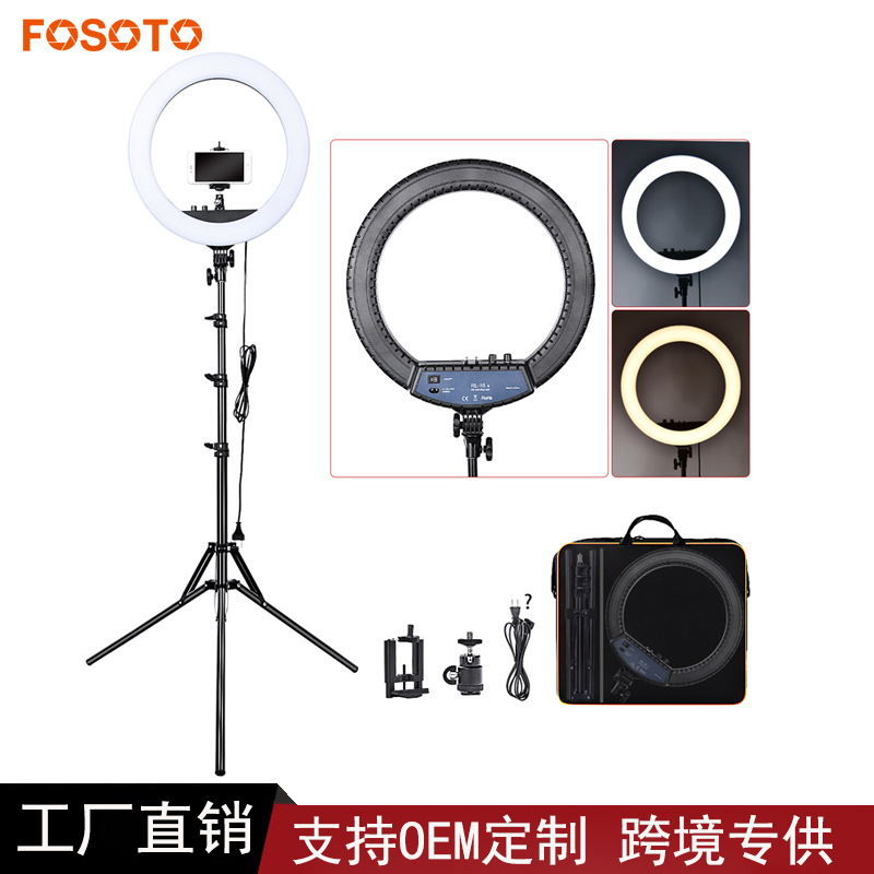 Lampu cincin 18 inci Perdagangan Luar Negeri cahaya jangkar video langsung lampu led foto ponsel temperatur dua warna grosir