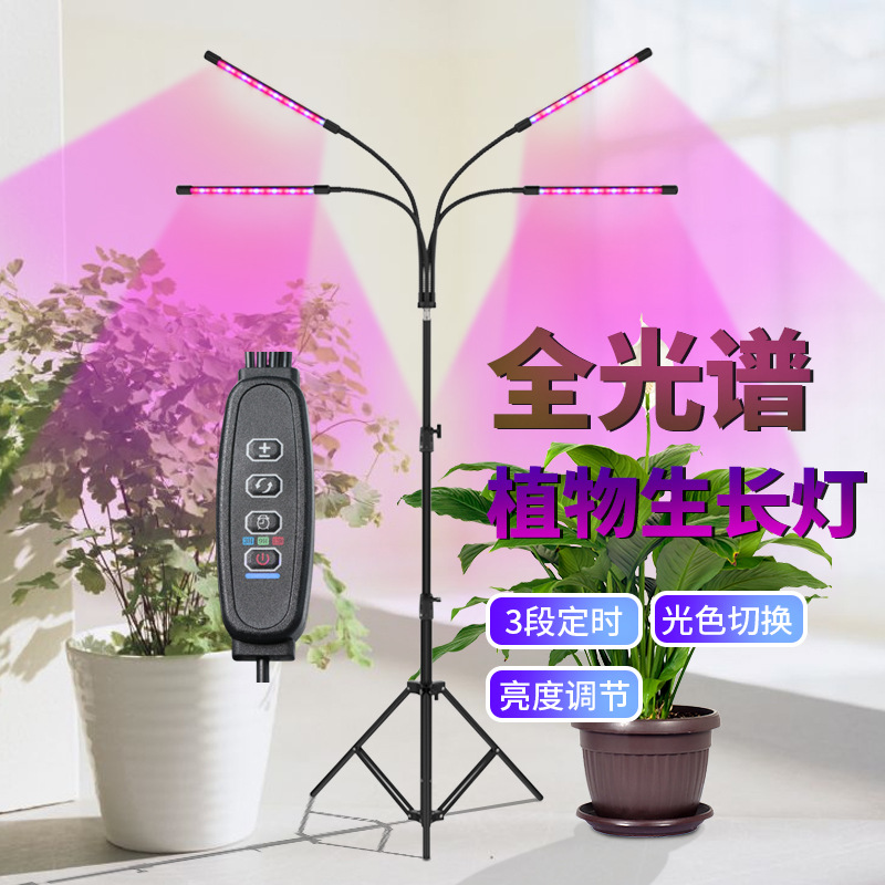Lampu pertumbuhan tanaman dengan dudukan lantai lampu Tanaman 3 kepala 4 kepala Led tanaman mengisi cahaya spektrum penuh waktu kontrol jarak jauh