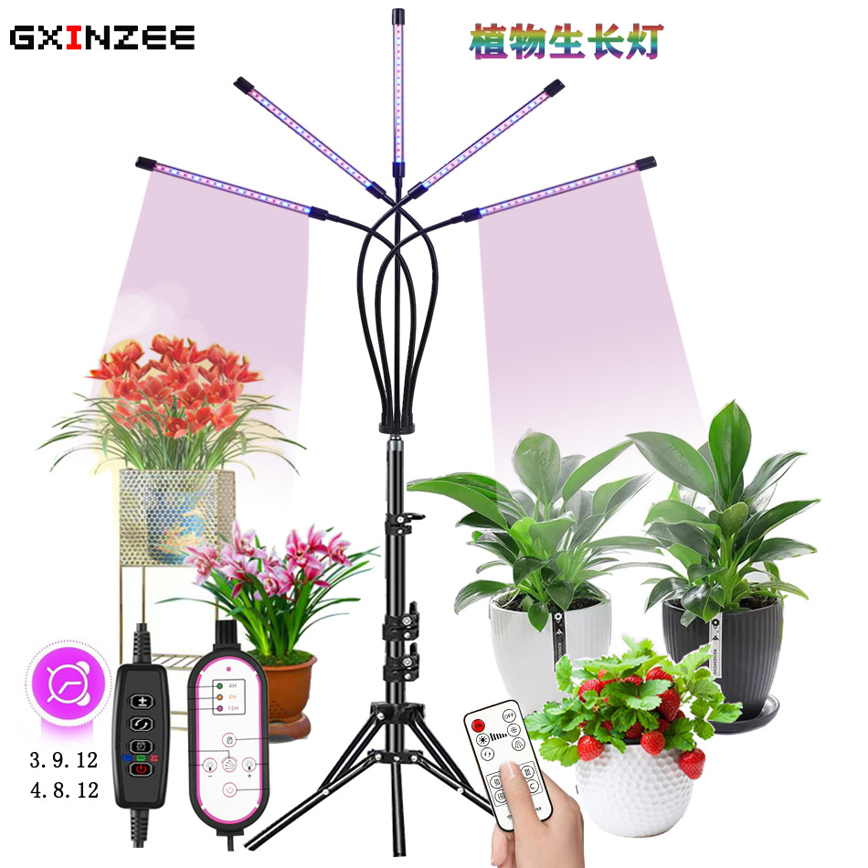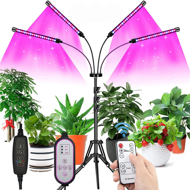 Lampu tanaman berdiri, 4-kepala led spektrum penuh lampu pertumbuhan tanaman kendali jarak jauh pengaturan waktu cerdas lampu isi ponsel