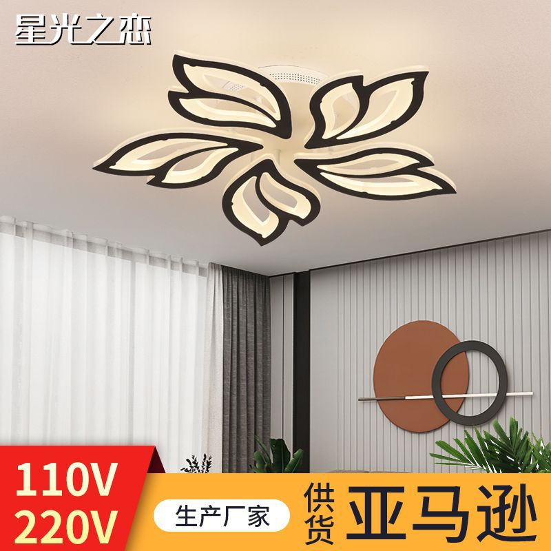 Amazon lampu langit-langit sederhana lintas batas lampu ruang tamu rumah kreatif lampu belajar kamar tidur LED lampu Villa lampu daun 5 kepala