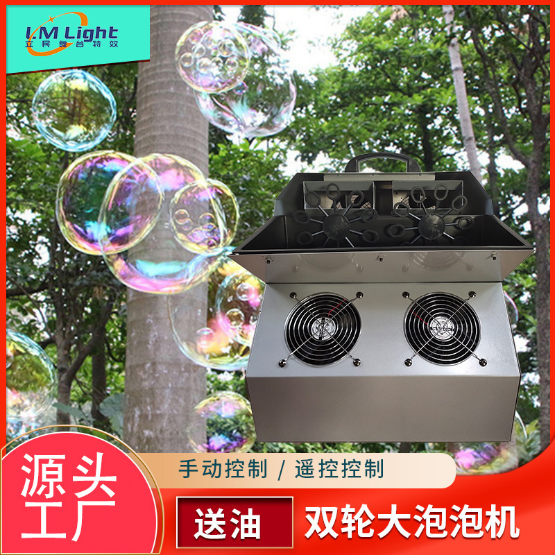 Mesin gelembung besar roda ganda remote control panggung dalam dan luar ruangan mesin busa besi festival jaring bar mesin gelembung komersial pernikahan merah