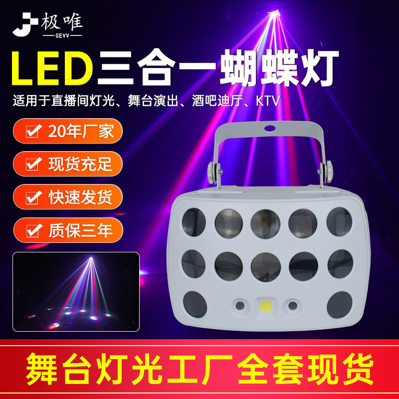 Lampu disko laser warna-warni, cahaya laser pola cahaya kupu-kupu led tiga-dalam-satu, lampu kilat ktv bar panggung