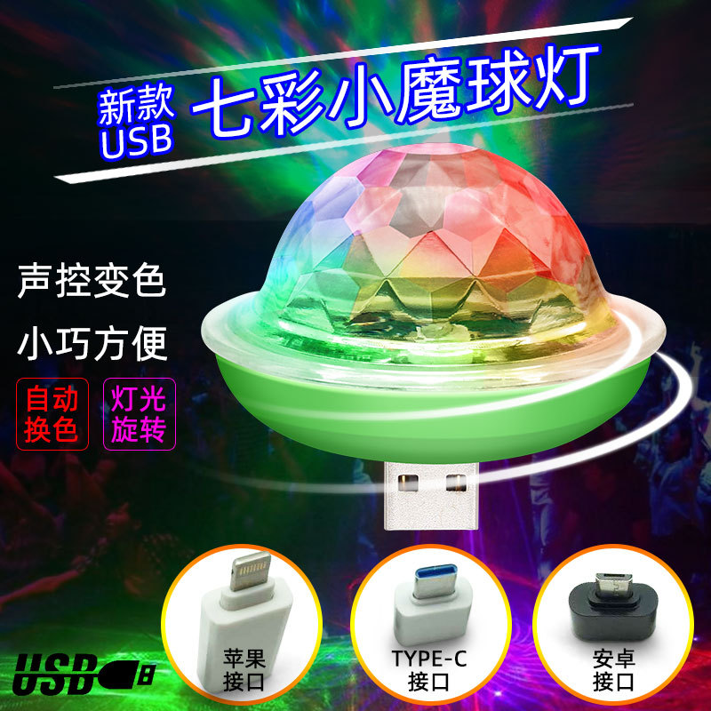 Lampu bola ajaib led warna-warni, lampu depan RGB berputar untuk ponsel, bola ajaib panggung kontrol suara elf generasi kedua