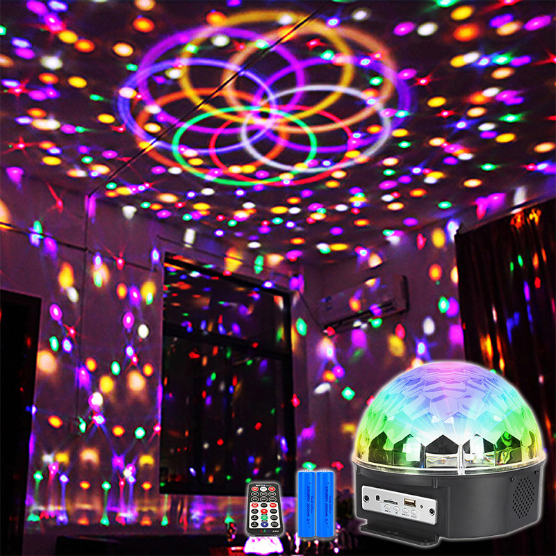 Lampu malam berbintang proyeksi Natal, lampu bola ajaib kontrol suara lampu disko Bluetooth audio panggung warna-warni