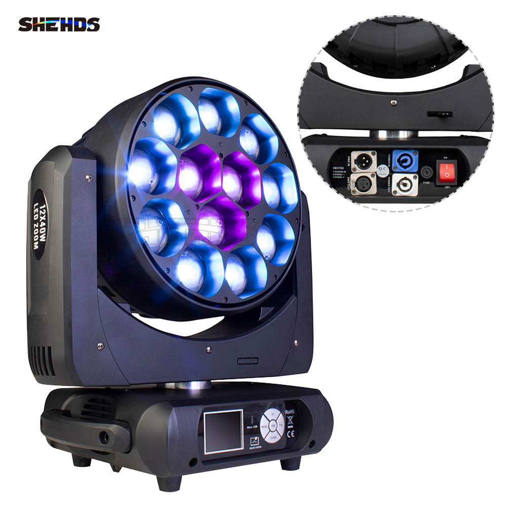 Shenhe lampu panggung pesta pernikahan, lampu efek pencelupan sinar pelangi RGBW, lampu kepala bergerak fokus mata lebah 12