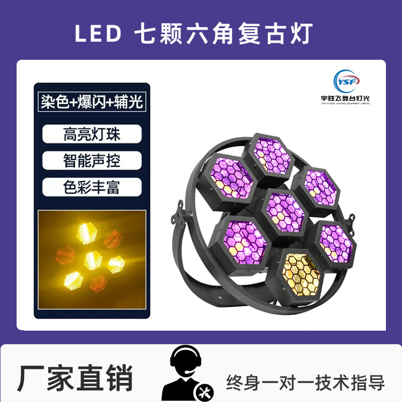 Lampu sorot LED heksagonal, lampu efek pencahayaan panggung, lampu strobo bar, lampu matriks, lampu splicing cahaya retro LED tujuh heksagonal