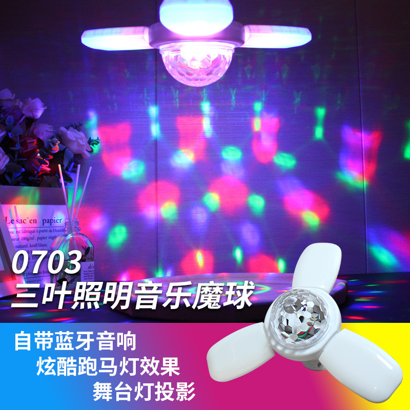 Lampu tiga daun bola disko musik lampu putar warna-warni cahaya langit berbintang cahaya bayangan lampu langit berbintang cahaya panggung cahaya berwarna