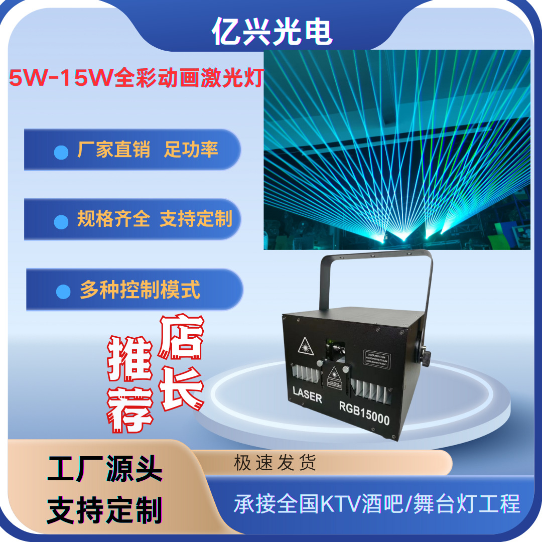 Lampu laser gedung Bar 15W, cahaya laser animasi warna penuh, lampu laser aula perjamuan pernikahan