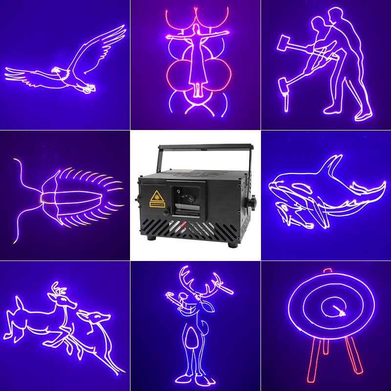 Lampu laser animasi 3D, 1W daya tinggi pola lampu panggung geometris kartun animasi warna pola Unduh lampu
