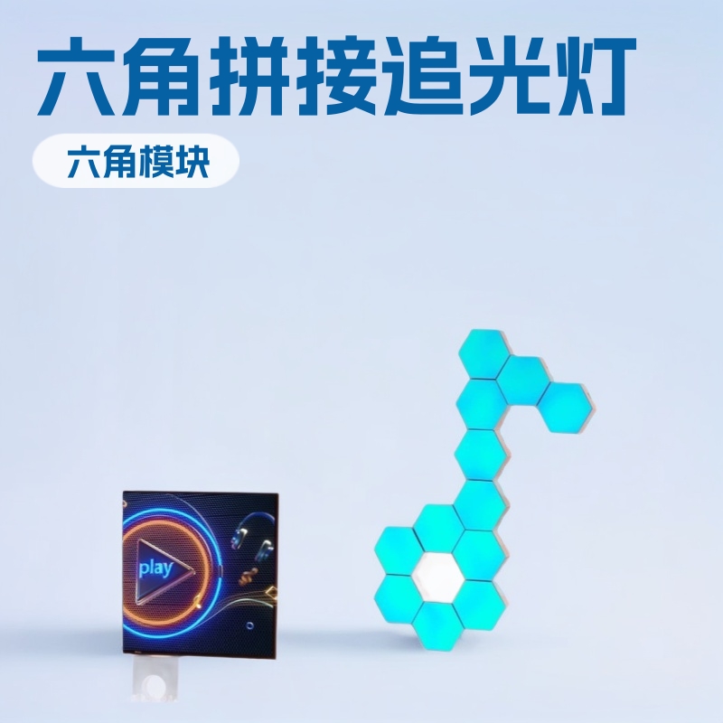 Lampu pelacak cahaya dengan modul heksagonal yang dapat disambung, lampu suasana ritme sensorik suara sekitar, strip lampu konstelasi, pertunjukan cahaya warna-warni Bluetooth