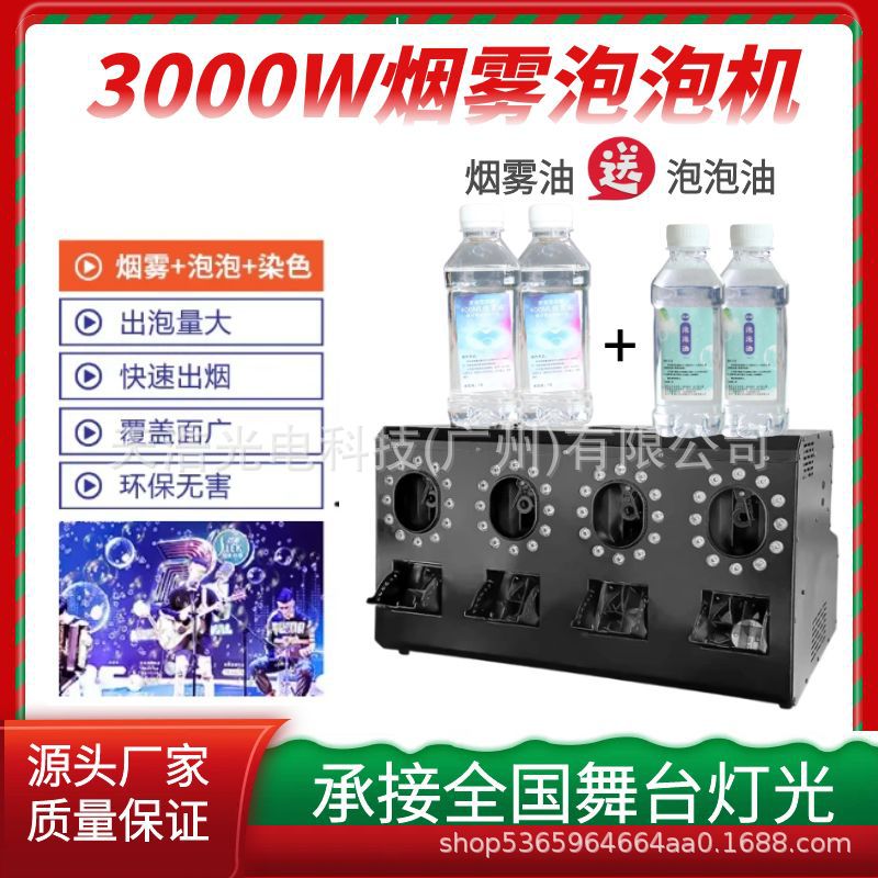 Mesin gelembung asap panggung, mesin gelembung led empat lubang, alat peraga pernikahan kinerja khusus, mesin tiup gelembung besar