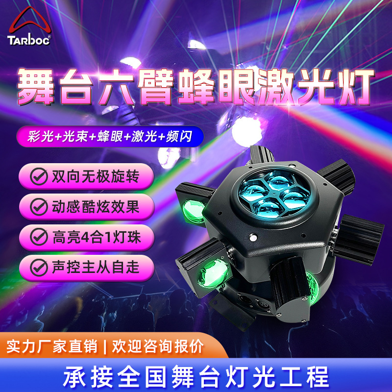 Lampu kepala bergerak enam lengan dengan kepala berlian, lampu sinar laser bee-eye, lampu efek laser hiburan untuk ruang pribadi KTV, bar, dan ruang siaran langsung.