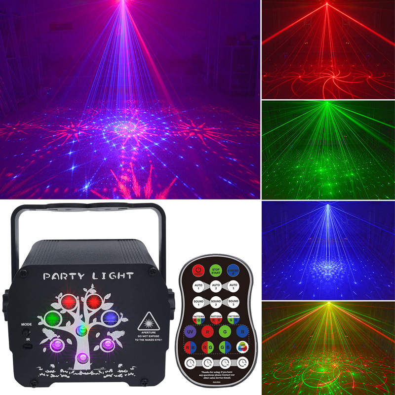 Lampu laser biru merah hijau, lampu panggung DJ pola 120, lampu suasana, dekorasi disko pesta