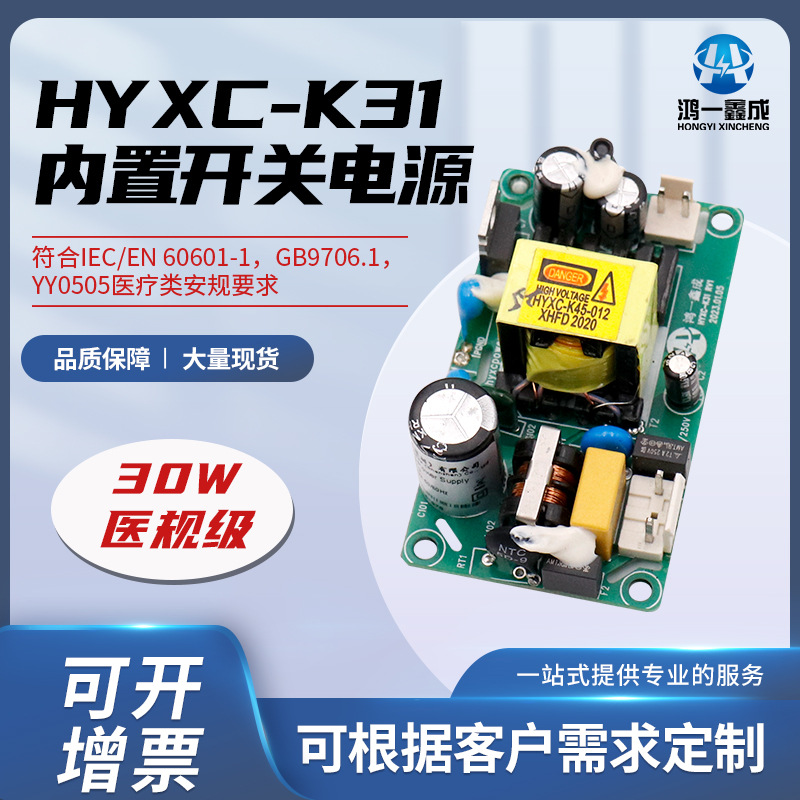 Catu daya pengalih kelas medis 30W, tipe substrat catu daya keluaran saluran tunggal bawaan, papan catu daya pemantauan 12V3A