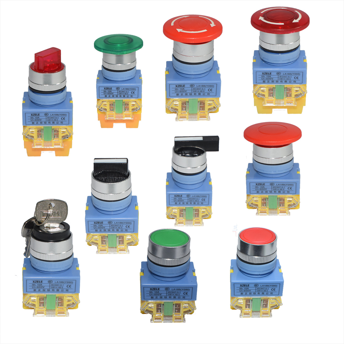 LA37(Y090) seri sakelar tombol lampu indikator sakelar tombol datar sakelar tombol berhenti darurat dengan lampu berhenti darurat