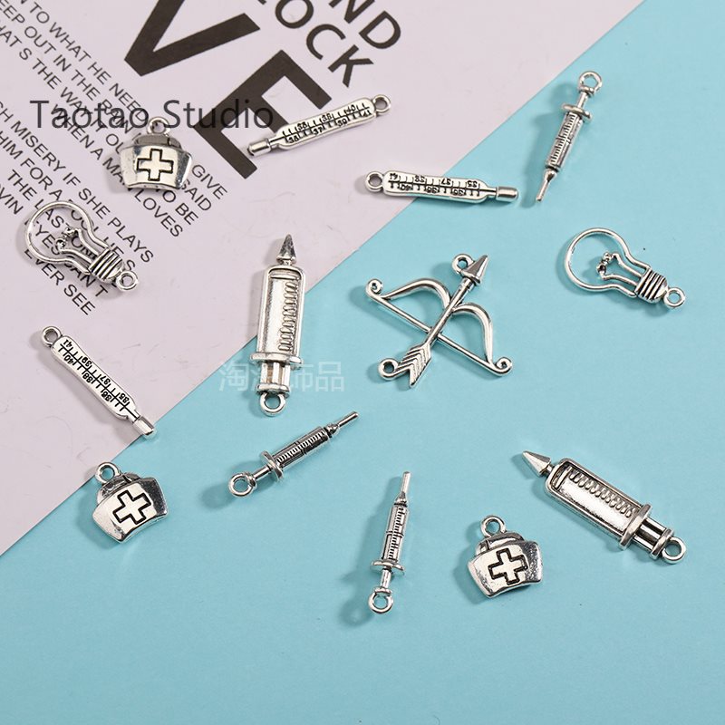 DIY aksesoris perhiasan kuno liontin perak bohlam jarum suntik tabung obat kotak anting rantai kalung gantungan kunci y2g