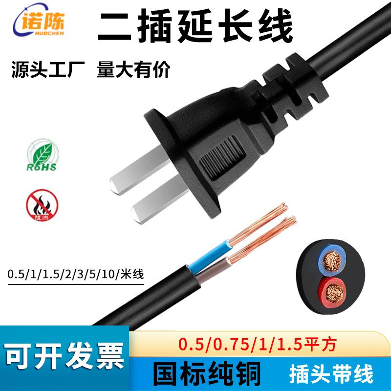 Tembaga murni standar nasional kabel listrik steker dua kaki dengan kabel telanjang ekor 2 inti 0,75 persegi kabel tunggal tiga steker lampu kipas