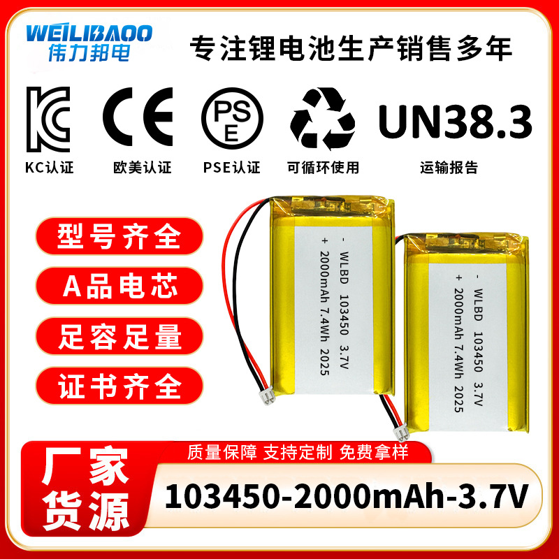 103450 Baterai Lithium Polimer 3.7v2000mAh Navigator Perekam Pelayaran Instrumen Pemantauan Tekanan Ban