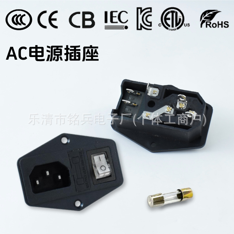 ETL soket listrik AC ukuran AS C14 karakter soket tiga pin dengan sakelar soket AC dengan lampu indikator
