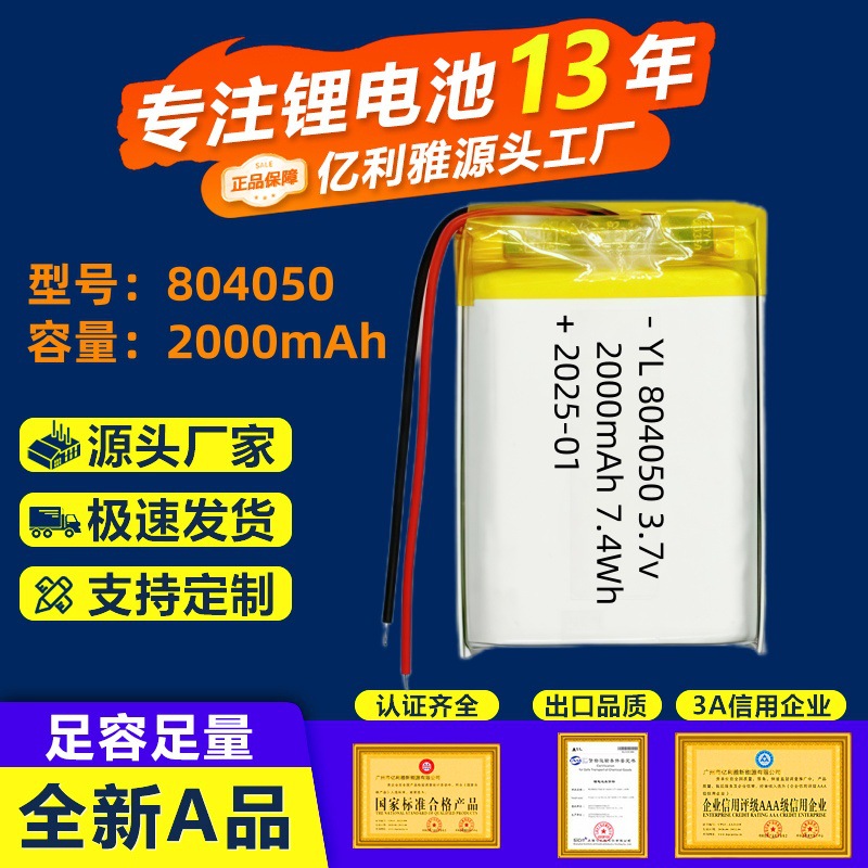 804050 Baterai Lithium Polimer 2000mAh Sapu Robot Bluetooth Audio Peralatan Kecantikan Baterai Isi Ulang
