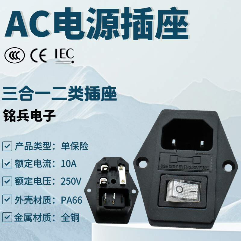 Soket Kata Produk Sertifikat CE Kelas II C18 Sekering 3-in-1 Soket AC Dengan Saklar Soket Listrik AC