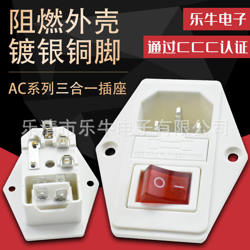 Soket AC AC-01A, sakelar lampu LED tiga dalam satu karakter 4 kaki putih merah cocok untuk medis industri rumah tangga