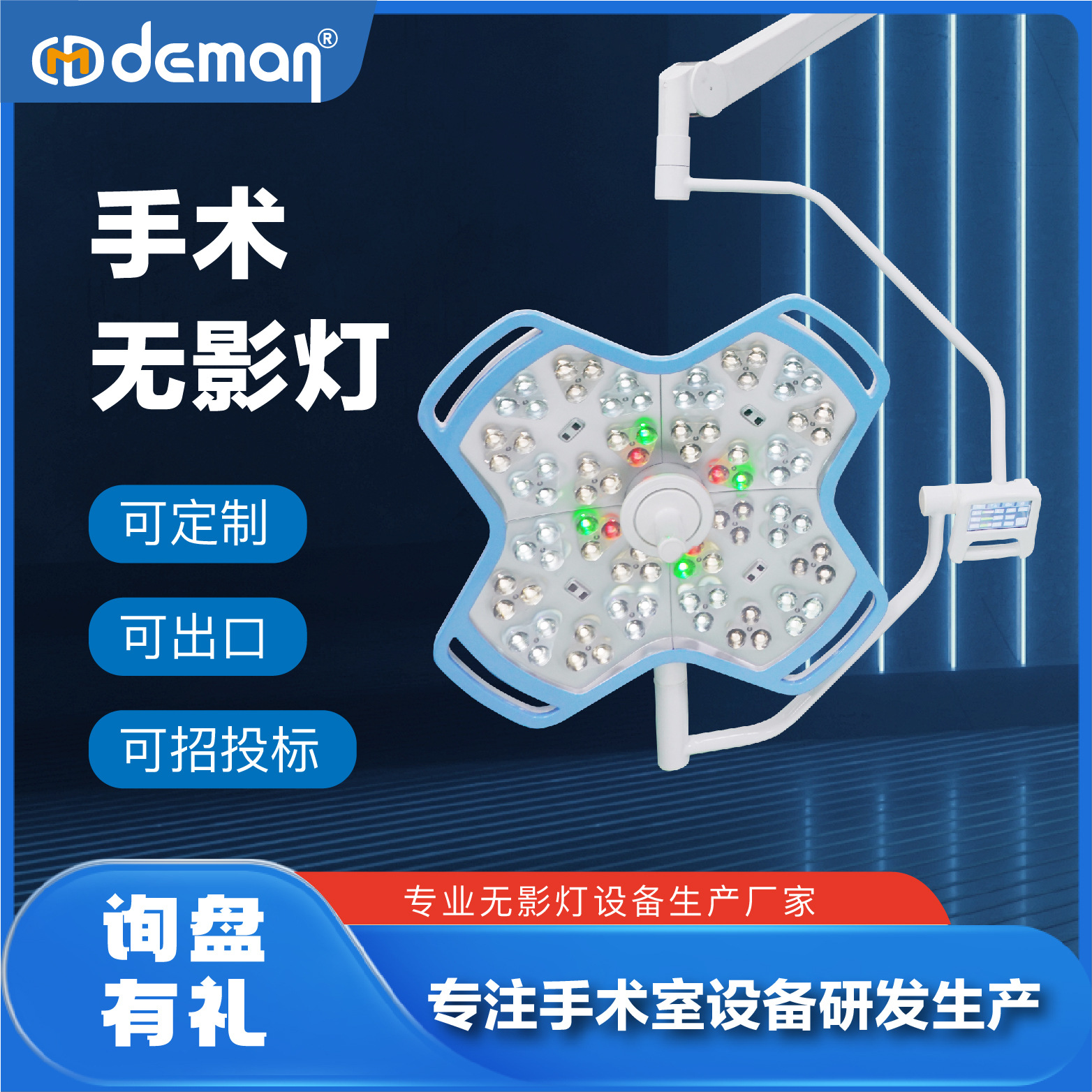 Lampu bedah medis lampu ruang operasi pemeriksaan lampu oftalmik plastik komprehensif terpasang di dinding led bedah tanpa bayangan