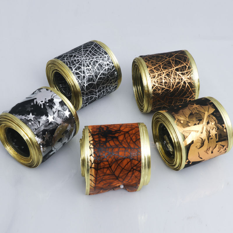 Cross-border diskon besar tepi panggang Halloween dengan kawat tertutup tepi imitasi pita rami laba-laba lampu labu tengkorak hantu