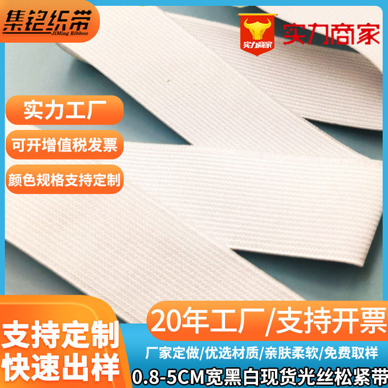 Pita elastis serat optik hitam dan putih Masker Mata Pita elastis pita cahaya glossy gelang karet lebar 0.8-5CM grosir
