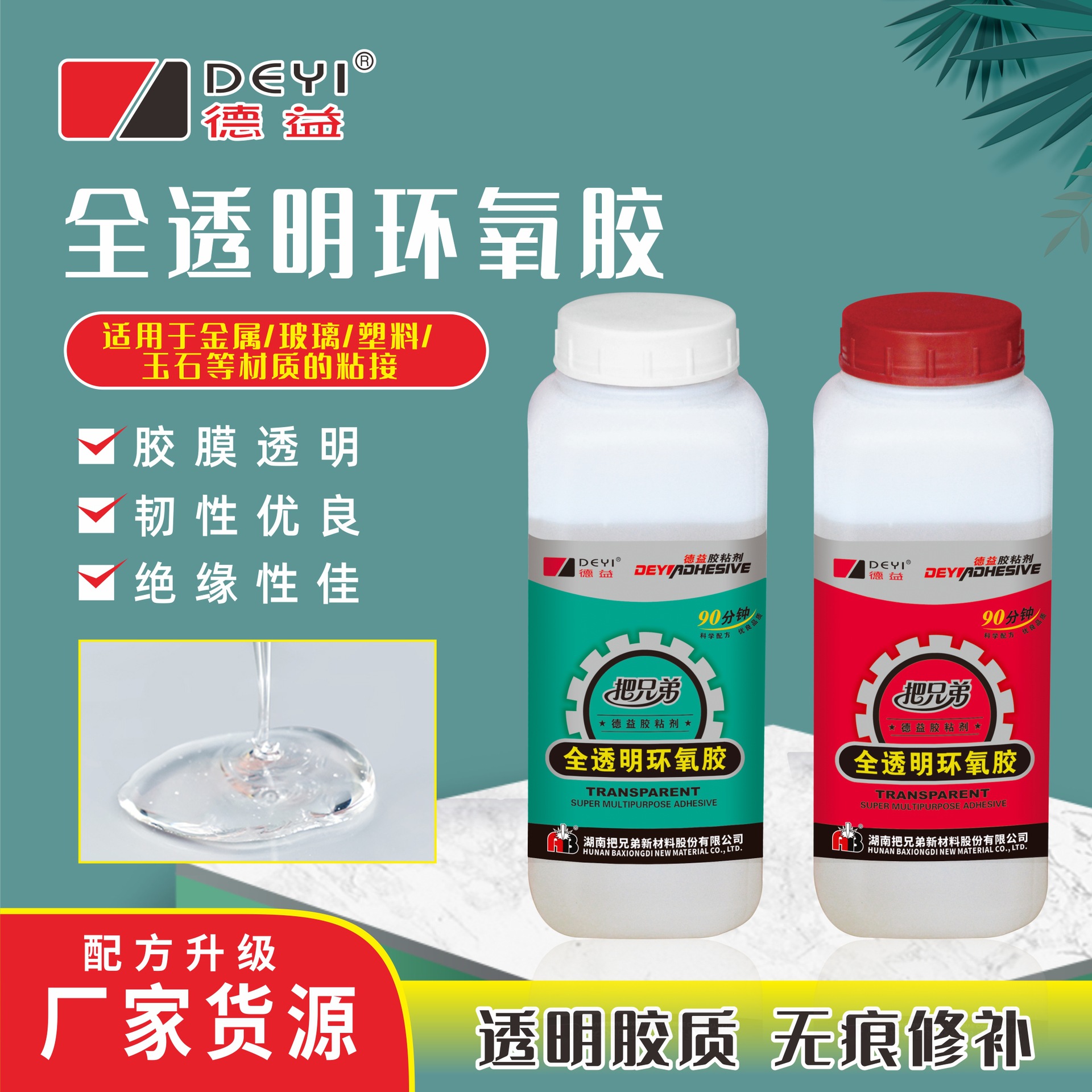 Lem epoksi Deyi E509, pengeringan lambat 90 menit, sepenuhnya transparan, perekat ab untuk merekatkan logam, kaca, dan batu giok dengan kekerasan tinggi.