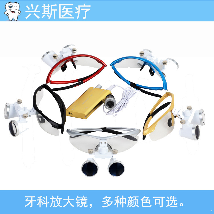 Kaca pembesar gigi, teropong medis pemasangan kepala lampu LED, kaca pembesar bedah bedah 2.5 kali 3.5 kali