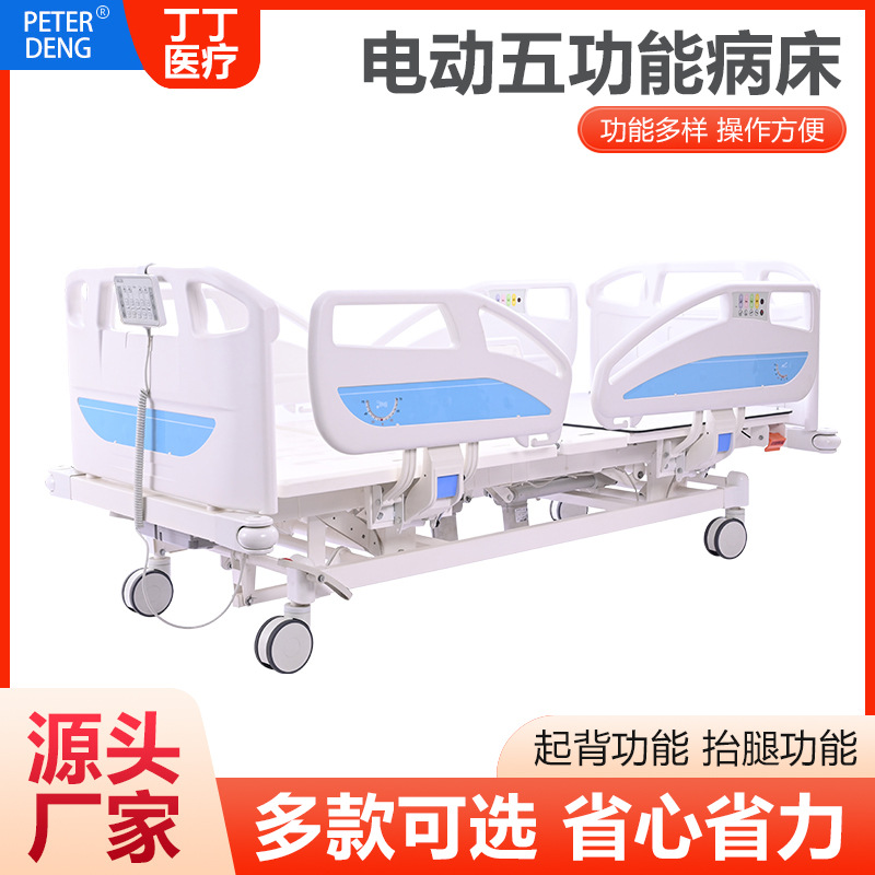 Tempat tidur perawatan elektrik, lima fungsi pembatas dengan tombol perangkat latihan perawat, lampu malam penyimpanan daya multifungsi