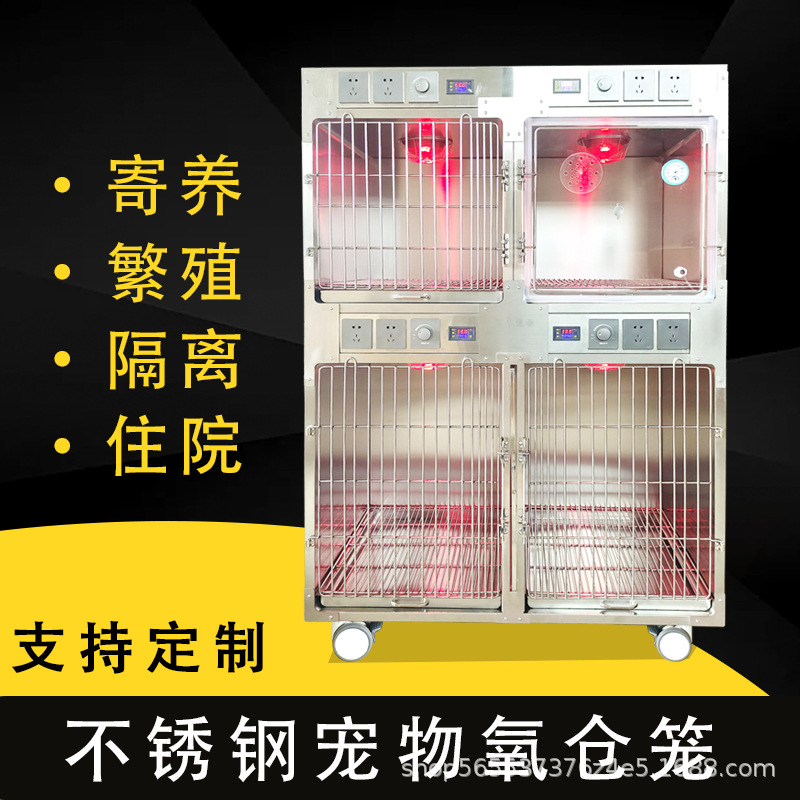 Stainless steel 304 kandang rumah sakit hewan peliharaan toko hewan peliharaan lampu pemanas inframerah ruang oksigen suhu konstan stainless steel infusi kandang anjing