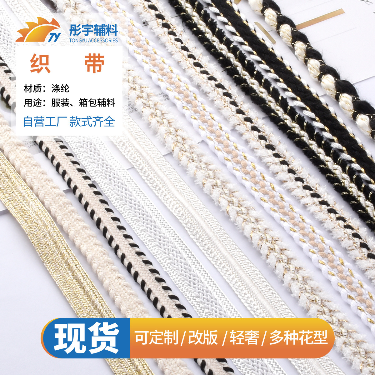 Populer dalam stok channel gaya pita berjumbai aksesori pakaian sabuk bergulir warna pita renda dalam persediaan