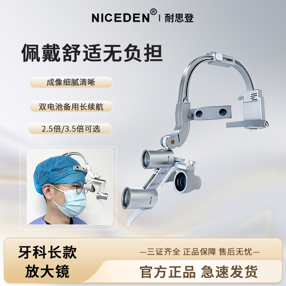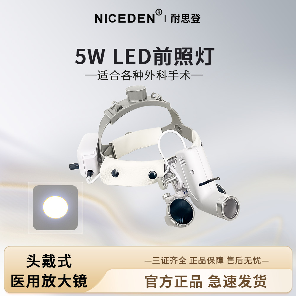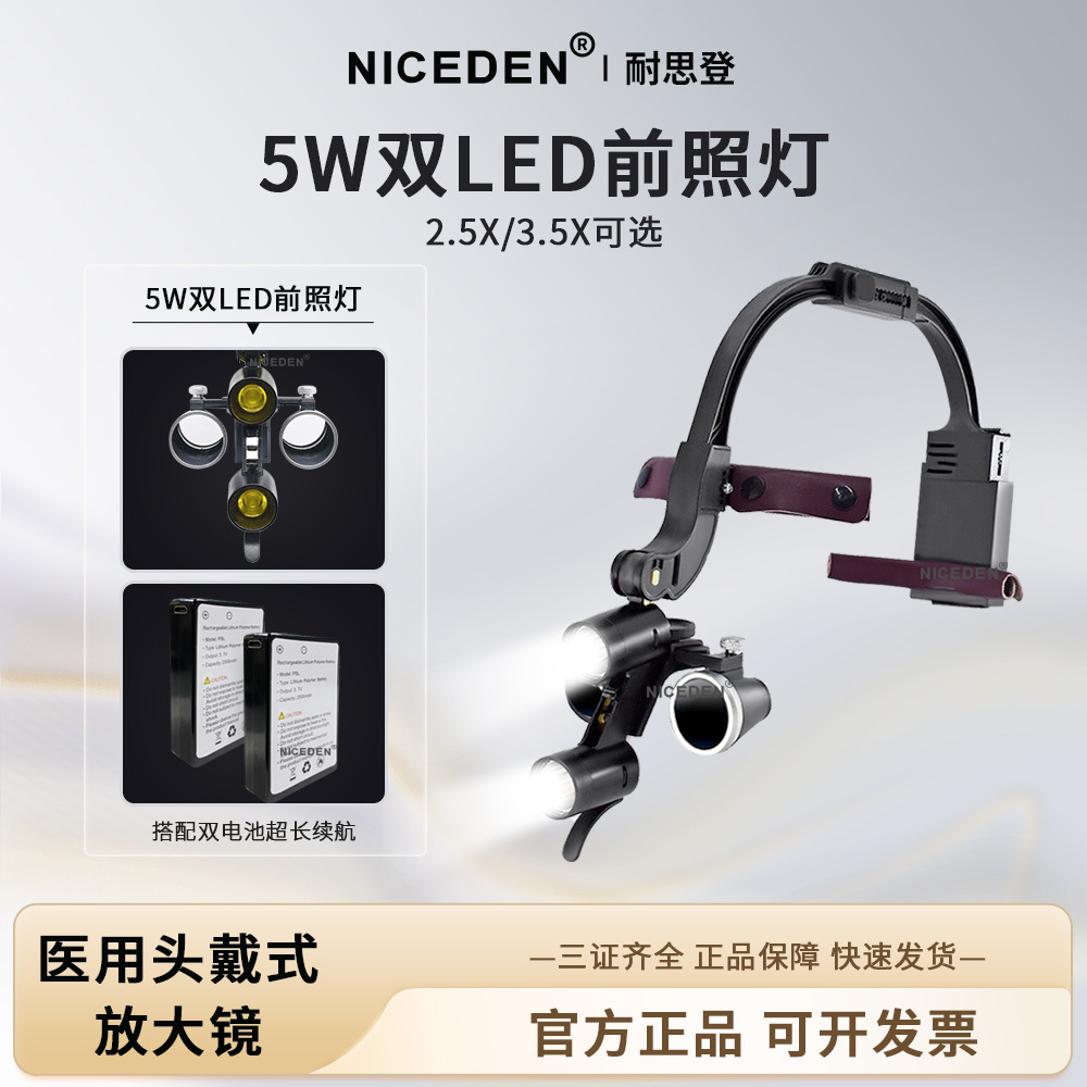 Kaca Pembesar Gigi Niceden yang Dipasang di Kepala + Lampu Kepala 5W untuk Bedah dan Kosmetik