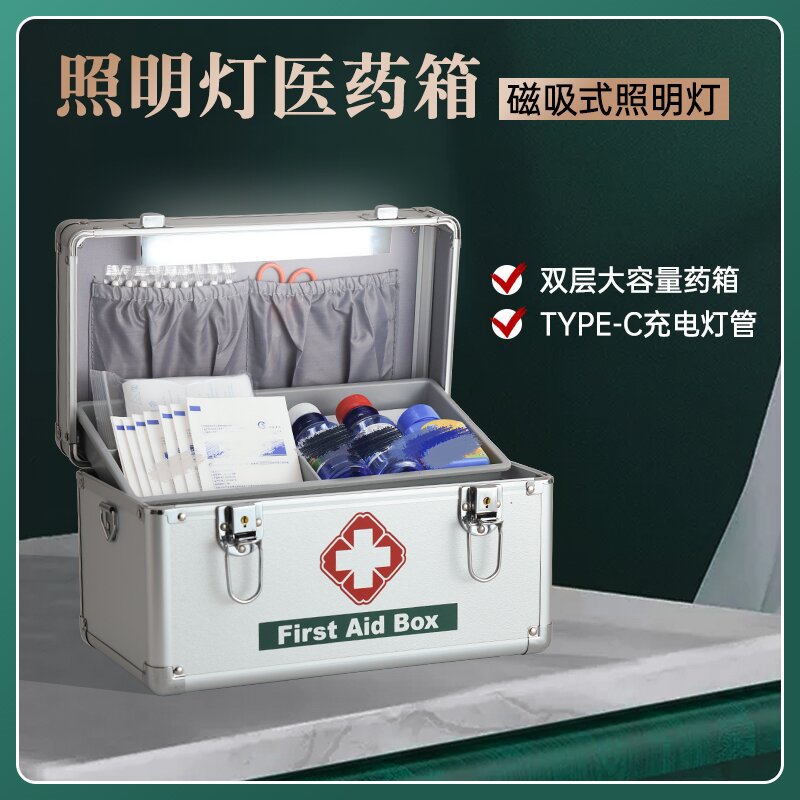Kotak Pertolongan Pertama Kotak Obat Dengan Lampu Magnetik Kotak Isi Ulang Malam Hari Kotak Aluminium Aldana Anti Debu Penutup Lapisan Ganda Portabel