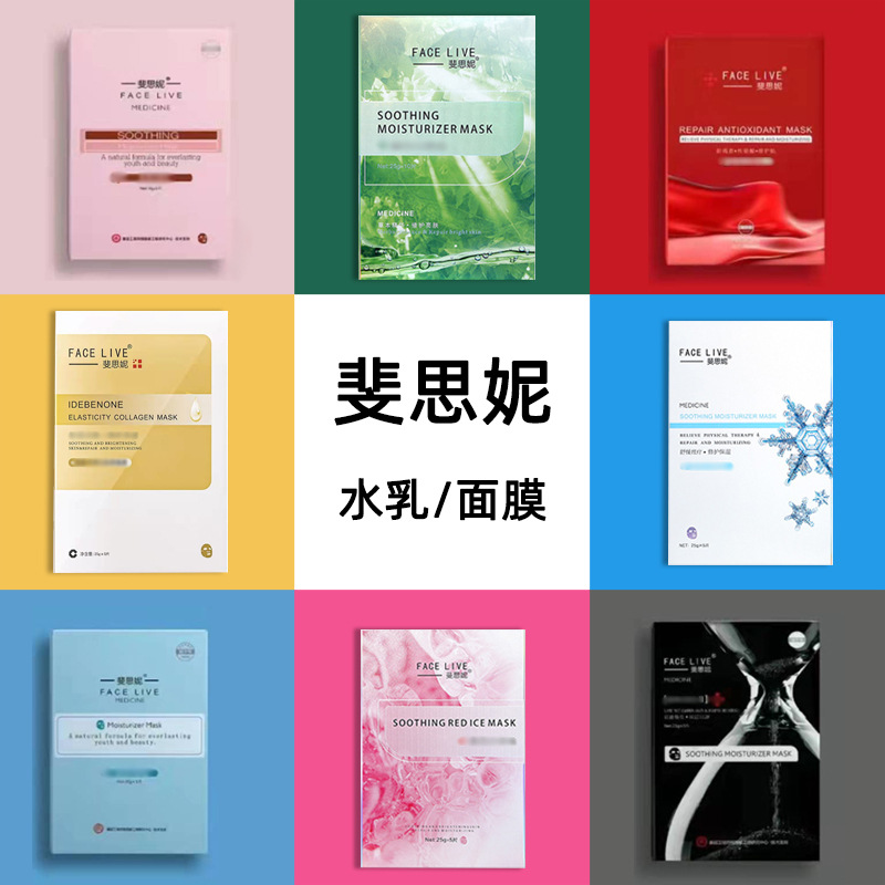 Feisini masker wajah hijau film bohlam bubuk es Hitam Kuning Biru Putih Merah film kolagen masker wajah Losion essence pembersihan