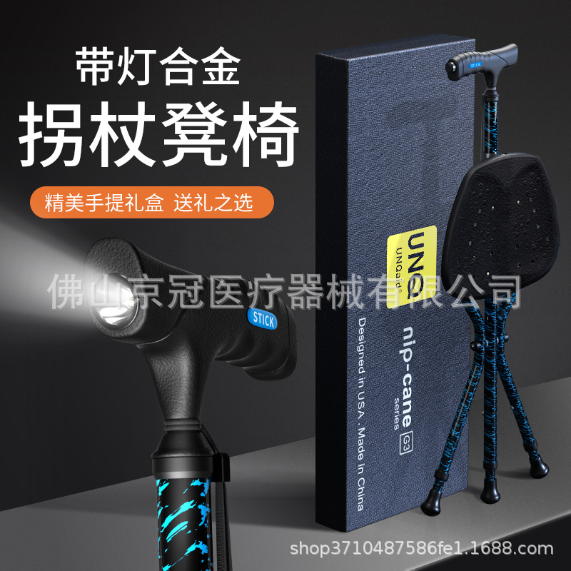 Kursi kruk lipat orang tua Inggris, kursi portabel sangat ringan anti licin dengan pencahayaan cahaya bangku tongkat berjalan