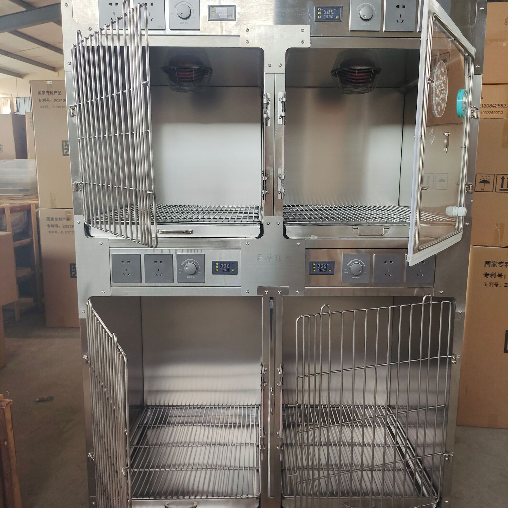 Kandang rumah sakit hewan peliharaan baja tahan karat, lampu pemanas inframerah rumah sakit hewan peliharaan suhu konstan kandang anjing pondok oksigen