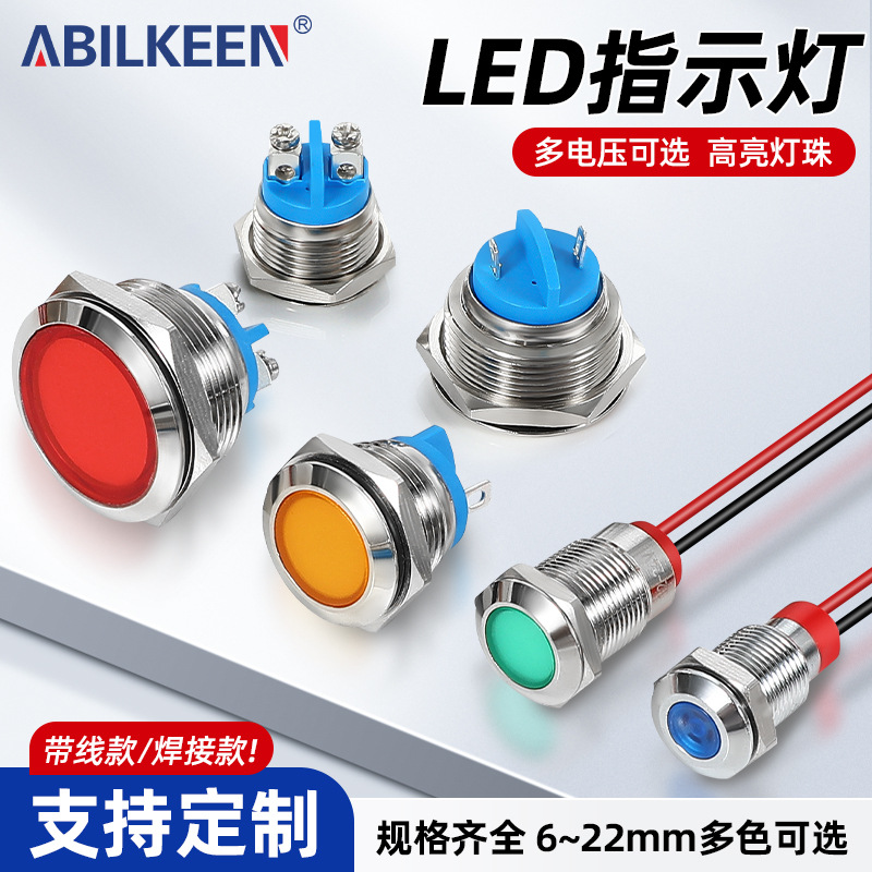 Pasokan pabrik lampu indikator logam LED IP67 lampu sinyal darurat daya 6/8/12/16/19/22MM
