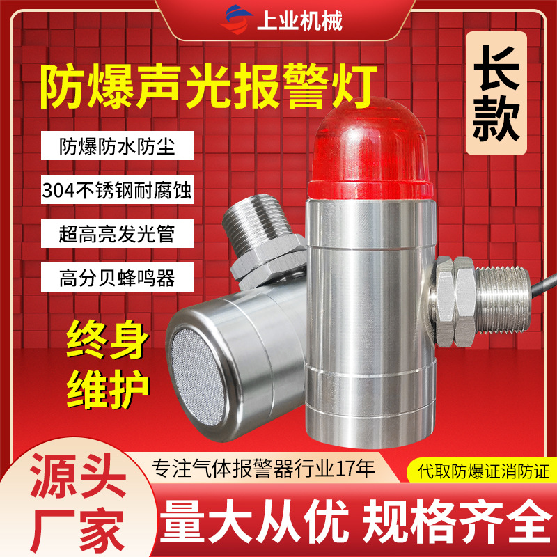 Alarm suara dan cahaya model panjang G1/2 stainless steel 24V tahan air dan tahan ledakan M20 * 1.5 indikator lampu kilat deteksi gas